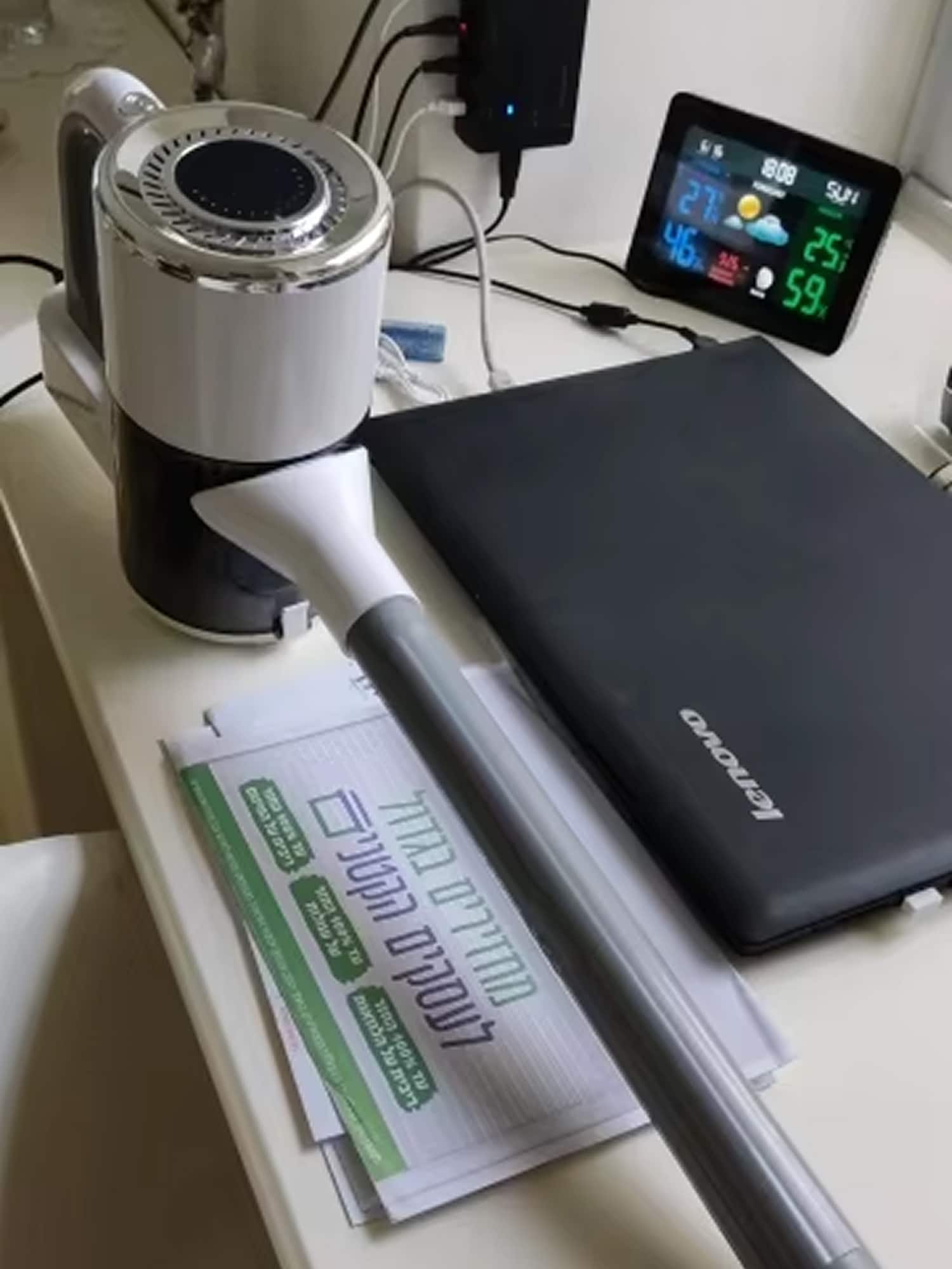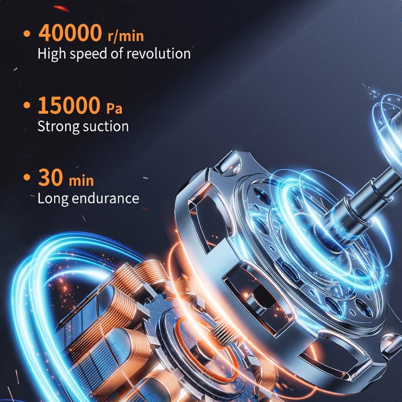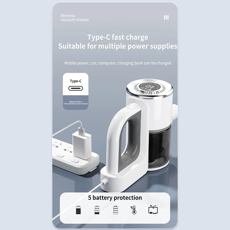 The battery offers 15-30 minutes of runtime depending on the power mode. Type-C fast charging fully replenishes it in 4-5 hours.