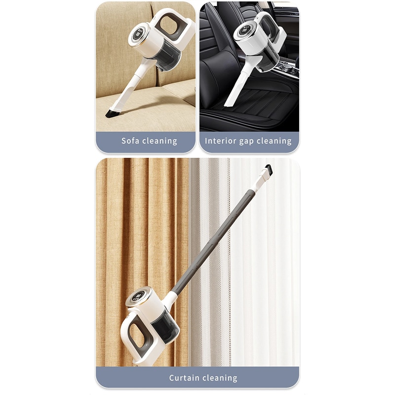 It works on hardwood, carpets, upholstery, car interiors, and curtains. Use the appropriate attachment for each surface.