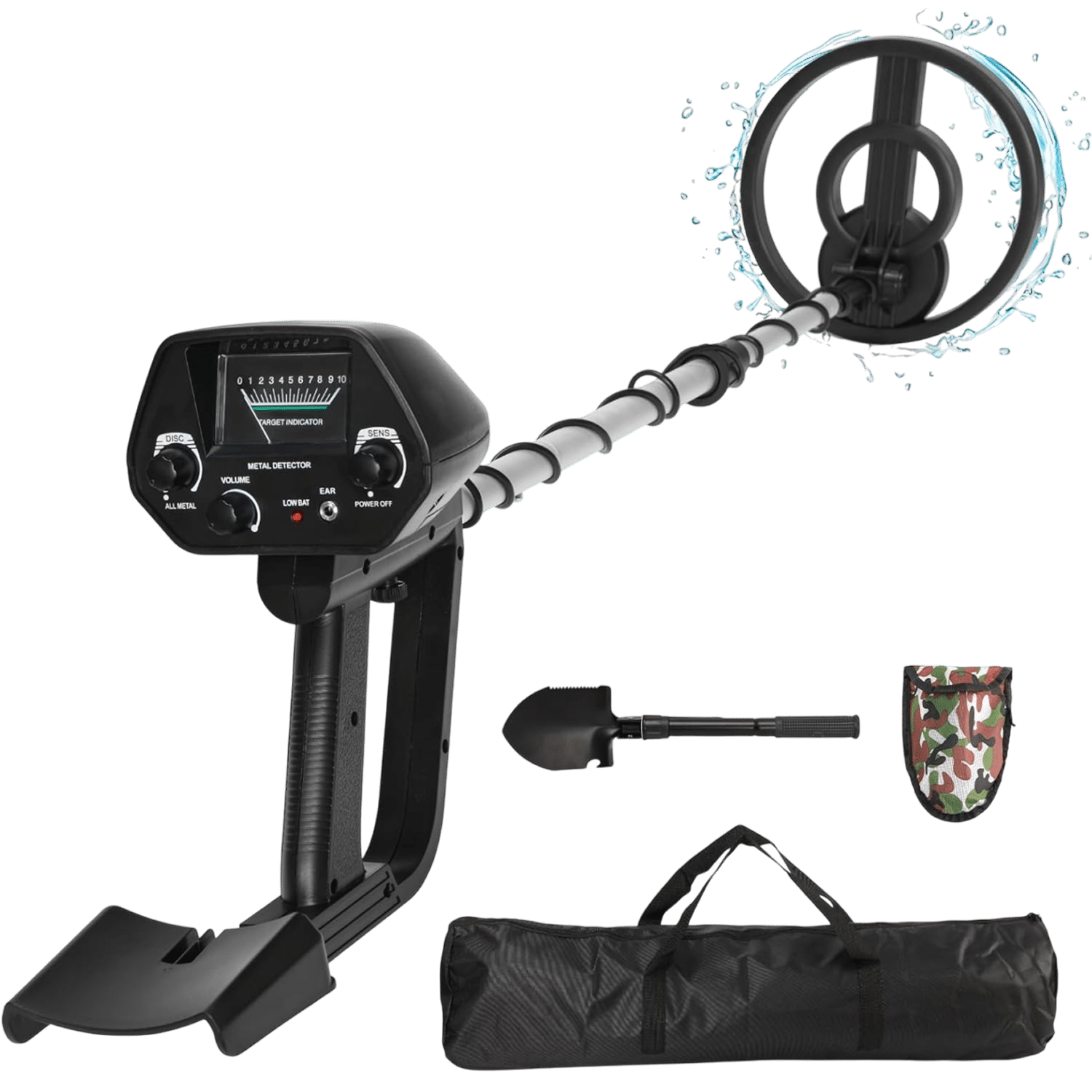 The MetoSdix Metal Detector offers versatility and ease of use with its ergonomic design, adjustable length, and intuitive controls. Perfect for long hunting sessions, it includes a complete accessory kit for immediate use.