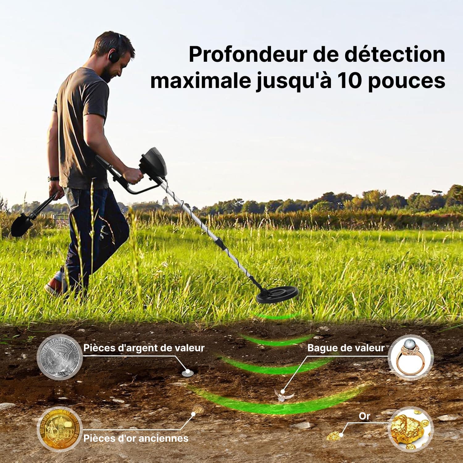 The MetoSdix Metal Detector’s 10-inch detection depth ensures you uncover treasures buried deeper than most detectors can reach, giving you an edge in your treasure hunts.